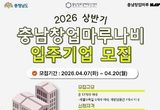 충남창조경제혁신센터 ‘2026년 상반기 충남창업마루나비 입주기업’ 모집