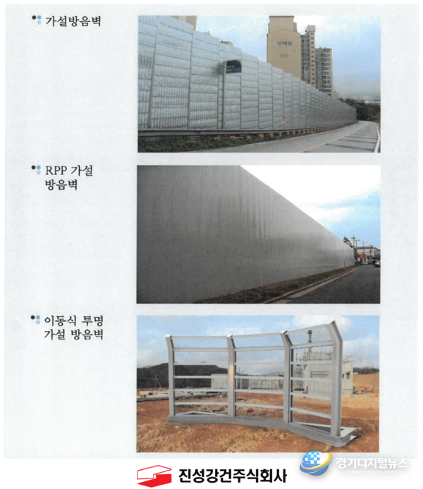 진성강건(주)는 가설울타리, 금속구조물, 방음벽 등 건설현장 필수 자재와 시공 서비스를 제공 하는 전문업체로 오랜 업력을 자랑한다. 300평 이상 사업장에 의무적으로 설치되는 방음·차폐 시설을 비롯해 산업단지, 학교, 공공시설 등 다양한 현장에서 풍부한 시공 경험을 쌓아온 기업이다. 품질과 안전을 최우선 가치로 삼아 업계에서 신뢰를 구축해 왔다.