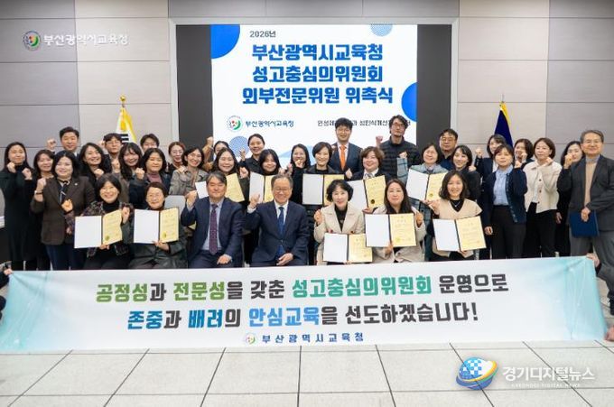경기디지털뉴스 마성숙 기자 | 부산광역시교육청은 지난 19일 오후 교육청 국제회의실에서 ‘성고충심의위원회 외부전문위원 위촉식 및 역량강화 연수’를 열고 23명의 외부전문위원에 대한 위촉장을 수여했다고 밝혔다.