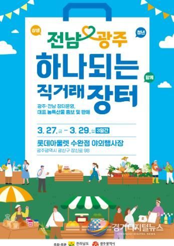 경기디지털뉴스 마성숙 기자 | 전라남도와 광주광역시는 27일부터 3일간 광주 롯데아울렛 수완점에서 ‘2026 전남·광주 하나되는 직거래장터’를 운영한다고 밝혔다.