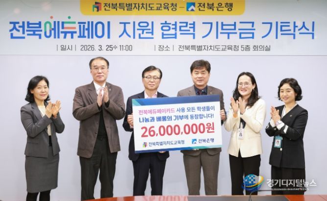 전북교육청과 전북은행은 25일 본청 5층 회의실에서 전북에듀페이 지원 협력사업 기부금 기탁식을 개최했다.