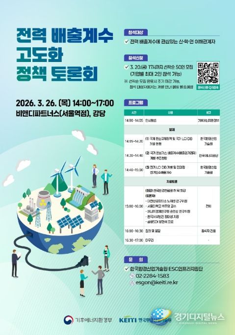 기후에너지환경부와 한국환경산업기술원은 3월 26일 오후 비앤디파트너스(서울 용산구 소재)에서 관계 전문가와 산업계가 참여하는 ‘전력 배출계수 고도화를 위한 정책토론회’를 개최한다고 밝혔다.