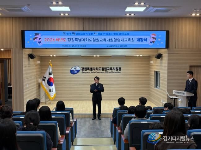 경기디지털뉴스 마성숙 기자 | 강원특별자치도철원교육지원청은 3월 25일 오후 3시 30분, 철원교육지원청 3층 강당에서 학생과 학부모, 지도교사 등 100여 명이 참석한 가운데 ‘2026학년도 강원특별자치도철원교육지원청영재교육원 개강식’을 개최했다.