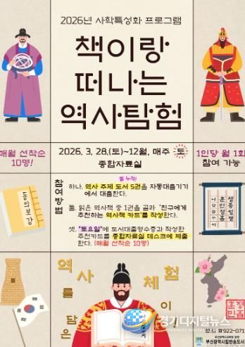 경기디지털뉴스 마성숙 기자 | 부산광역시립반송도서관은 오는 28일부터 12월까지 매주 토요일 도서관 종합자료실에서 도서관 이용자를 대상으로 사학 특성화 프로그램 ‘책이랑 떠나는 역사탐험’을 운영한다.