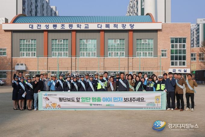 경기디지털뉴스 마성숙 기자 | 대전시는 26일 서구 성룡초등학교 일원에서 어린이 교통사고 예방과 안전한 통학환경 조성을 위해 ‘어린이 보호구역 일단멈춤, 아이 먼저 보내주세요’ 교통안전 캠페인을 실시했다.