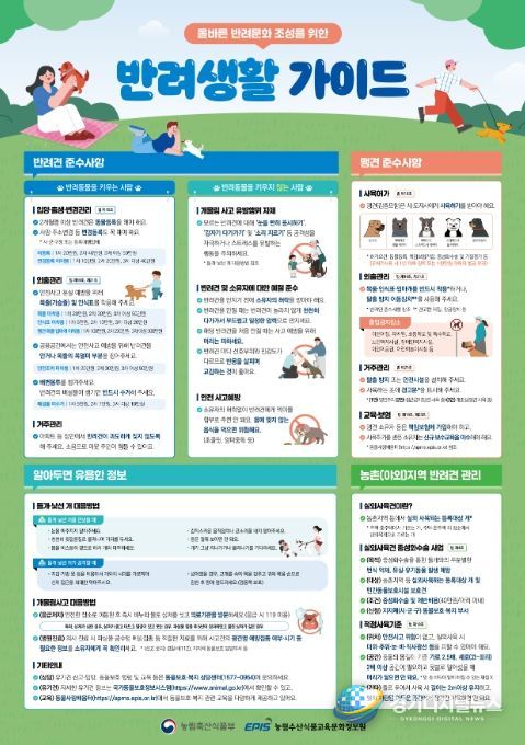 경기디지털뉴스 마성숙 기자 | 농림축산식품부는 반려문화의 안정적 정착 및 확산을 위해 대국민 홍보영상인 ‘올바른 반려생활 가이드’를 배포했다고 밝혔다.
