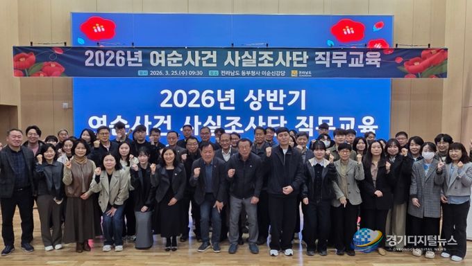 경기디지털뉴스 마성숙 기자 | 전라남도는 26일까지 이틀간 여순사건 미처리 3천294건을 법정 조사기한에 처리하기 위해 ‘2026 상반기 여순사건 사실조사단 역량강화교육’을 했다.