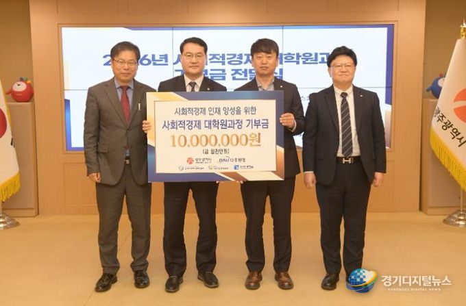 경기디지털뉴스 마성숙 기자 | 광주지역 사회적기업인 ㈜다우환경이 광주시가 추진 중인 ‘사회적경제 대학원과정 지원사업’을 후원하는 기부금을 전달했다.