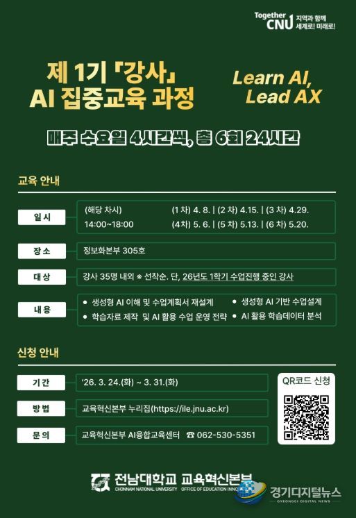 30일 전남대학교에 따르면, 교육혁신본부(본부장 정은경)는 ‘제1기 강사 AI 역량 강화 집중교육 과정’을 운영한다.