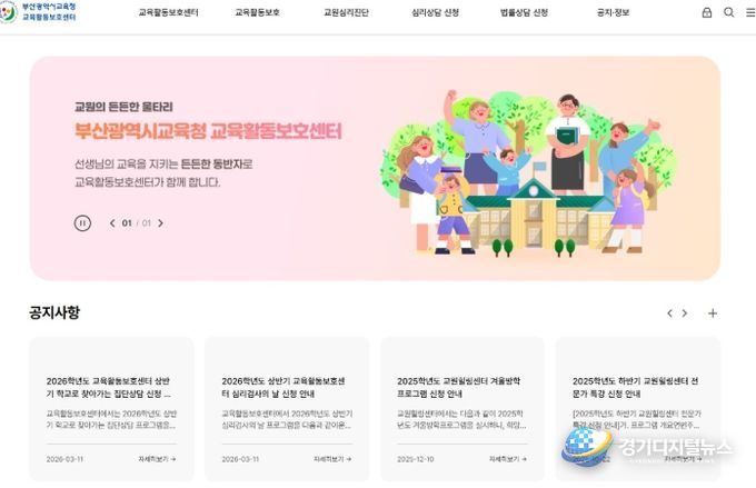 경기디지털뉴스 마성숙 기자 | 부산광역시교육청 교육활동보호센터가 홈페이지를 새롭게 개설하고 교원들의 교육활동 보호 체계 강화에 나섰다.