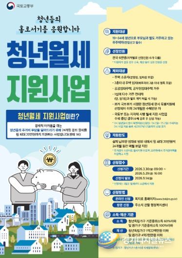 신청은 3월30일부터 5월29일까지 복지로 누리집 또는 거주지 행정복지센터에서 가능하다. 자격 심사를 거쳐 9월 중 대상자를 발표하고 5월분부터 월세를 소급해 지원한다.