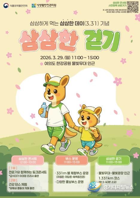 경기디지털뉴스 마성숙 기자 | 식품의약품안전처는 식약처 삼삼한 데이(3월 31일)를 맞아 3월 29일 여의도 한강공원에서 건강한 식습관 확산을 위한 ‘삼삼한 걷기’ 행사를 개최했다.
