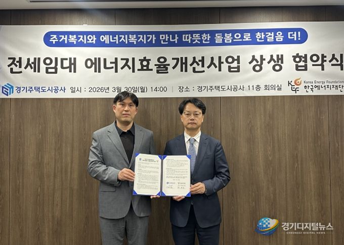 경기디지털뉴스 마성숙 기자 | 경기주택도시공사(GH)가 수원 GH 본사에서 저소득층 주거환경 개선과 에너지 빈곤층 해소를 위해 한국에너지재단과 ‘전세임대 에너지효율 개선사업 상생 협약’을 체결했다고 30일 밝혔다.