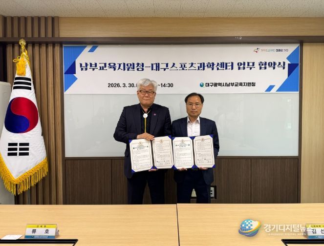 경기디지털뉴스 마성숙 기자 | 대구남부교육지원청은 지난 3월 30일 오후 2시, 남부교육지원청에서 대구스포츠과학센터와 업무 협약을 체결했다.