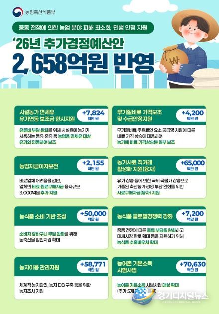 경기디지털뉴스 마성숙 기자 | 농림축산식품부는 2026년 추가경정예산안으로 총 2,658억원을 편성했다고 밝혔다.