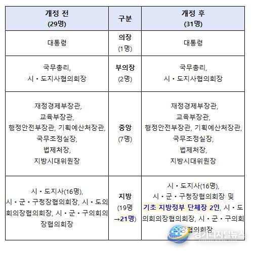 시행령 개정의 주요 내용은 협력회의 내 기초 지방정부 단체장 구성원이 기존 1명에서 3명으로 총 2명을 확대하는 것이다.