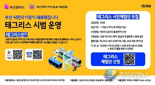 시범 운영은 오는 4월 3일부터 시작되며, 태그리스 이용 확대와 효과검증을 위해 교통카드사(마이비)에서 시민체험단을 모집 운영할 계획이다.