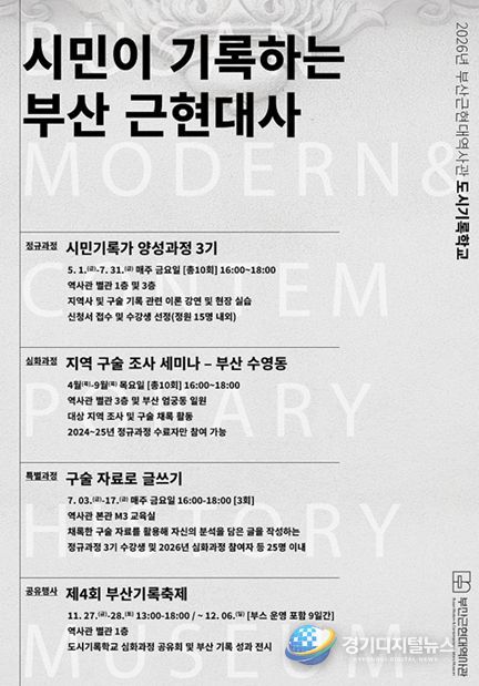 경기디지털뉴스 마성숙 기자 | 부산근현대역사관은 2026년 시민 대상 기록 프로그램의 일환으로 '도시기록학교'를 운영한다고 밝혔다.