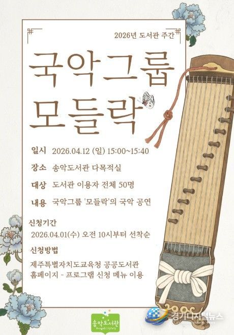 경기디지털뉴스 마성숙 기자 | 제주도교육청 송악도서관은 12일 송악도서관 다목적실에서 ‘모들락! 신나는 국악 여행’을 주제로 국악 공연을 개최한다.