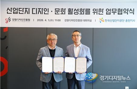 경기디지털뉴스 마성숙 기자 | 강원디자인진흥원은 1일 강원디자인진흥원 대회의실에서 한국산업단지공단 강원지역본부 춘천지사와 산업단지 내 디자인·문화 활성화를 위한 공동사업 추진 업무협약을 체결했다고 밝혔다.