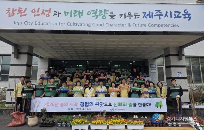 경기디지털뉴스 마성숙 기자 | 제주시교육지원청은 1일 제81회 식목일을 맞아 청사 일원에서 전 직원이 참여한 가운데 식목행사와 청렴 실천 캠페인을 함께 실시했다.