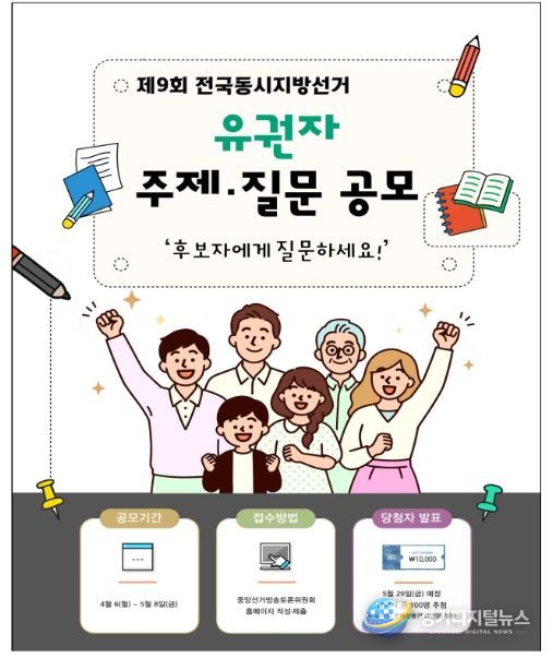 경기디지털뉴스 마성숙 기자 | 중앙선거방송토론위원회는 제9회 전국동시지방선거 후보자토론회에서 토론주제와 질문사항 선정에 활용하기 위해 4월 6일부터 ‘유권자 주제·질문 공모’를 실시한다고 밝혔다.