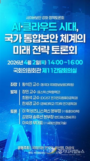 경기디지털뉴스 마성숙 기자 | AI와 클라우드 전환이 가속화되는 가운데, 국가 보안 체계가 내부자 위협에 충분히 대응하지 못하고 있다는 지적이 제기됐다. 국회의원 민병덕·박선원·이상식 의원은 'AI·클라우드 전환 시대, 국가 통합보안 체계의 미래 전략'을 주제로 사이버보안 강화 정책토론회를 개최했다고 밝혔다. 이번 토론회는 데이터, 계정·권한, 물리적 접근 등 보안의 핵심 요소가 서로 분리된 상태로 운영되고 있는 현 구조의 한계를 점검하고, 통합보안 체계로의 전환 방향을 모색하기 위해 마련됐다.