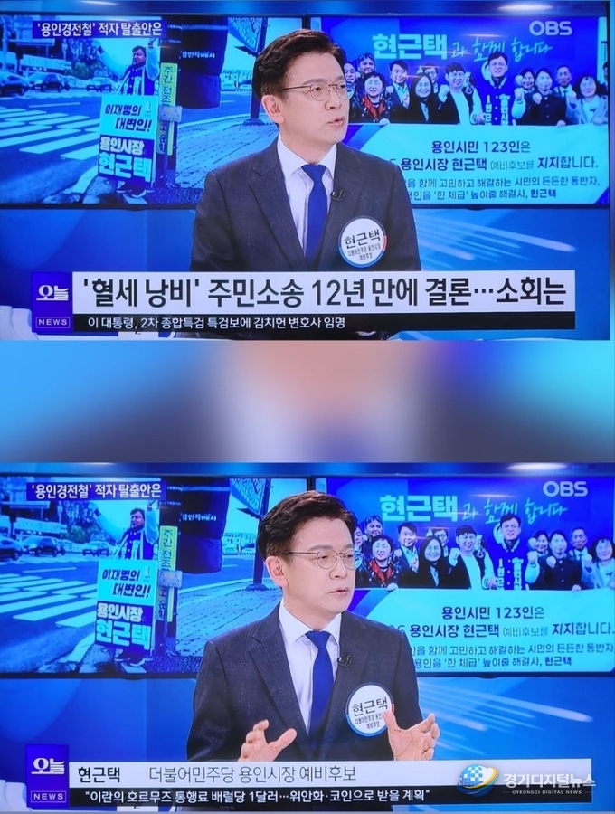 더불어민주당 현근택 용인시장 예비후보가 2일 OBS 채널 ‘생방송 뉴스 오늘’에 출연해 반도체 이전 계획이 없다고 밝혔다. 현 예비후보는 “임기 내인 2030년 6월까지 삼성전자 1기 팹을 조기 가동시키는 것을 목표로 하겠다”고 말했다.