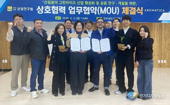 경기디지털뉴스 마성숙 기자 | 전라남도산림연구원은 3일 ㈜아로마티카와 업무협약을 체결하고, 전남의 난대 산림자원에서 추출한 에센셜오일을 활용해 K-뷰티 화장품 개발과 산업화를 추진한다고 밝혔다.
