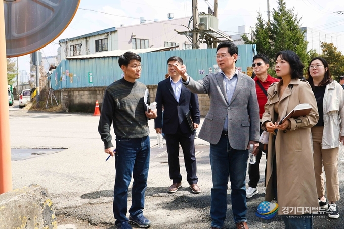 이 시장은 4일 오전 시민과 함께 기흥중학교 공사 현장과 인근 통학로를 둘러보며 학생 안전과 관련된 시설 전반을 점검했다. 이날 점검에는 청곡초 학부모회 등 20여 명이 함께 참여해 실질적인 현장 의견을 전달했다.