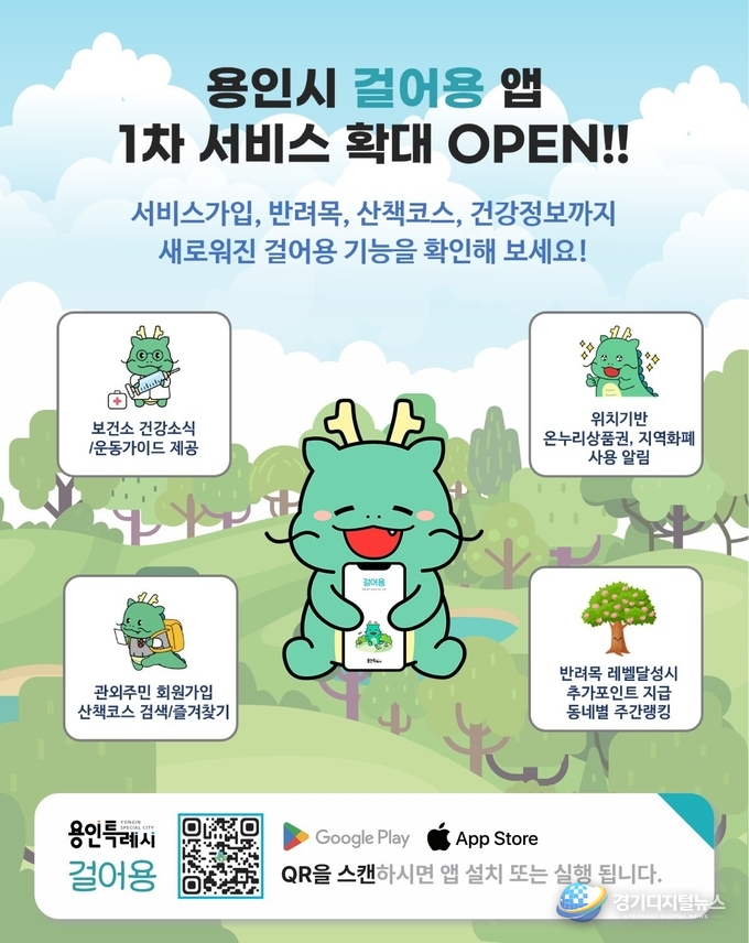 용인특례시(시장 이상일)가 시민 건강 증진과 지역경제 활성화를 동시에 겨냥한 산책 앱 ‘걸어용’을 대폭 개편하며 생활밀착형 스마트 플랫폼으로 한 단계 업그레이드했다.