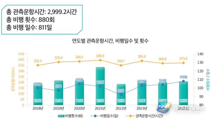 나라호는 도입 이래 현재까지 연평균 약 375시간, 총 약 3,000시간의 비행과 880회의 관측 임무를 수행하며 우리나라 주변 해상의 대기 상태를 관측해 왔다. 이것은 지구를 27바퀴 돌 수 있는 거리인 1백8만 km에 해당한다. 나라호의 비행시간은 기상 분야 선진국과 대등한 수준으로, 이는 기상청이 세계 정상급의 항공 관측 역량을 유지하고 있음을 보여준다.