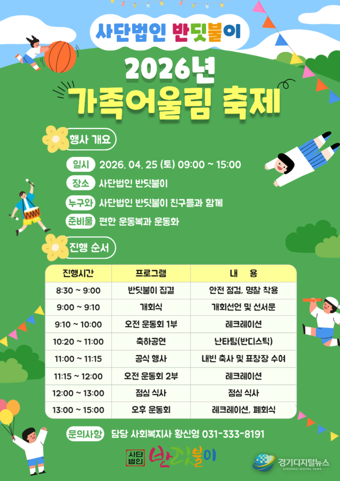 반딧불이(교장 박인선)는 오는 4월 25일 오전 9시부터 오후 3시까지 반딧불이 주차장에서 ‘2026년 가족 어울림 축제’를 개최한다고 밝혔다.