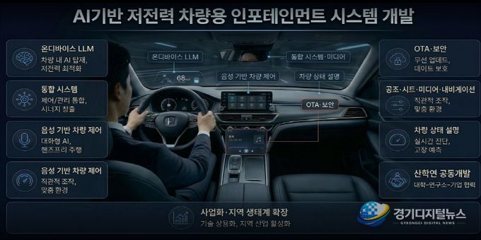 이번 사업은 이러한 산업변화에 대응하고자 ▲온디바이스(On-device) AI 기반 음성·제스처 인식 ▲저전력 최적화 및 실시간 처리 ▲무선 업데이트(OTA) 및 차량 보안 ▲경량 대규모언어모델(LLM) 기반 차량 제어 및 사용자 인터페이스 등을 통합한 차세대 차량 인포테인먼트 플랫폼 개발을 추진한다.