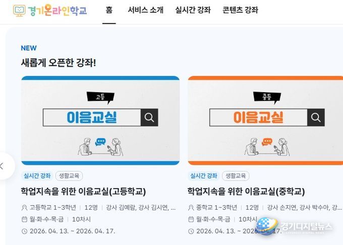 경기디지털뉴스 마성숙 기자 | 경기도교육청이 오는 13일부터 10월 19일까지 학업 중단 위기 학생의 학업 복귀를 지원하는‘경기온라인학교 이음교실’을 확대 운영한다.