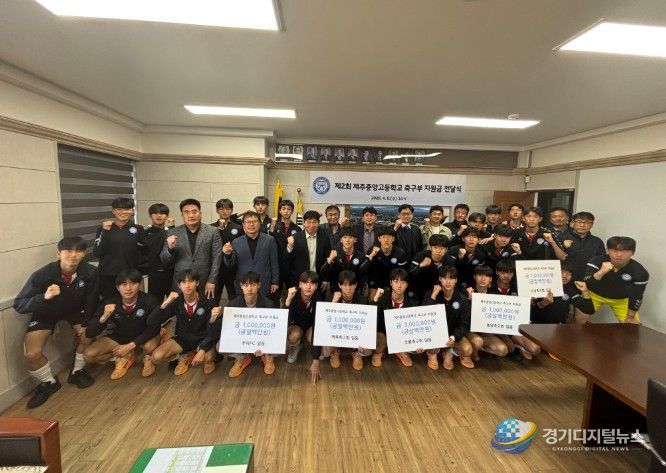 경기디지털뉴스 마성숙 기자 | 제주도교육청 제주중앙고등학교는 8일 도내 생활체육 축구 문화를 이끄는 오름축구회, 돌담축구회, 백록축구회, 소낭축구회, 우리축구회(FC) 등 5개 단체로부터 ‘제2회 제주중앙고 축구부 지원금 전달식’을 통해 장학금 700만원을 전달받았다.