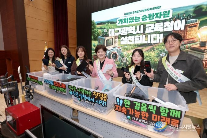 경기디지털뉴스 마성숙 기자 | 대구시교육청은 4월 10일 오전 10시, 시교육청 행복관에서 최근 중동 지역 분쟁 등 글로벌 지정학적 위기로 고조되는‘자원 안보’의 중요성에 대응하고, 일상 속 탄소중립을 실천하기 위한‘순환자원 캠페인-ESG 나눔 모두비움 실천대회’를 개최했다.