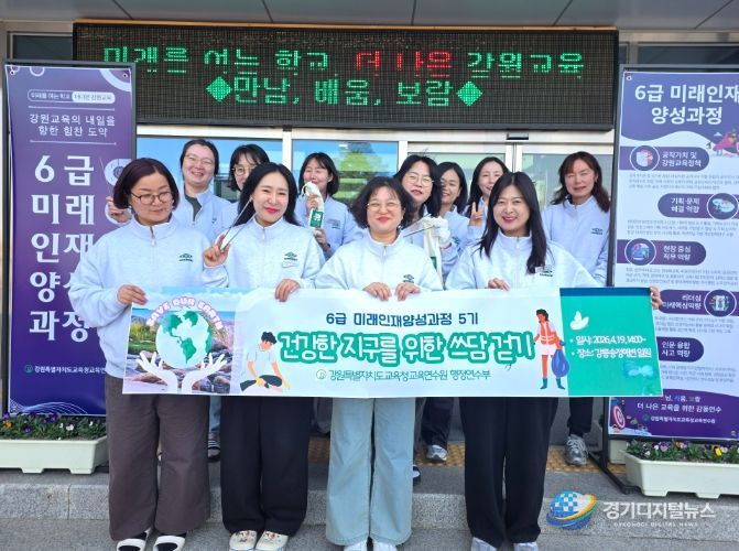 경기디지털뉴스 마성숙 기자 | 강원특별자치도교육청교육연수원은 4월 13일, ‘6급 미래인재양성과정 5기’ 연수생들과 함께 지역 생태 자산의 가치를 보존하고 기후 위기 대응을 실천하기 위한 ‘건강한 지구를 위한 환경봉사 쓰담걷기’ 프로그램을 운영했다.