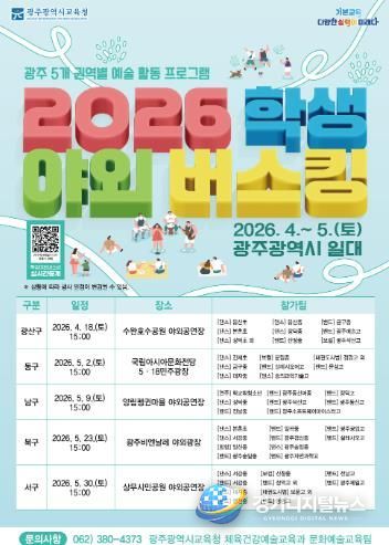 경기디지털뉴스 마성숙 기자 | 광주시교육청이 오는 18일부터 5월 30일까지 광주 5개 자치구에서 45팀, 348명이 참여하는 ‘2026 학생 야외버스킹’을 개최한다.