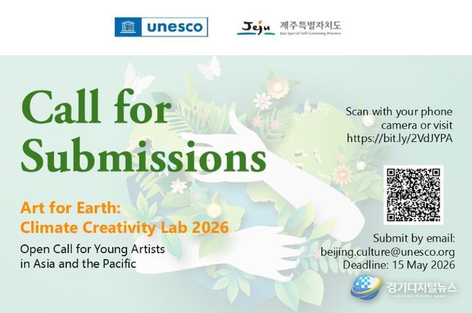 경기디지털뉴스 마성숙 기자 | 제주특별자치도가 유네스코(UNESCO)와 새롭게 공동 추진 중인 ‘Je Create: 지속가능한 미래를 위한 문화와 혁신’ 사업의 일환으로, ‘Art for Earth: 기후 창의성 랩 2026’에 참여할 청년예술가를 오는 5월 15일까지 공개 모집한다.