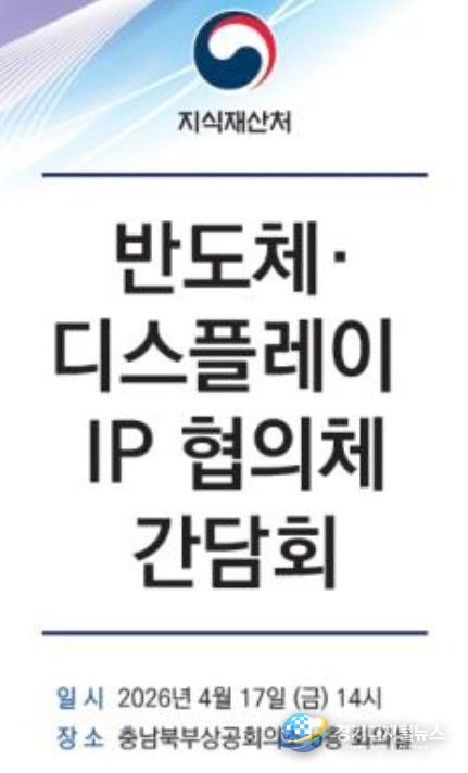 경기디지털뉴스 마성숙 기자 | 지식재산처는 4월 17일 14시 충남북부상공회의소(충남 천안시)에서 반도체 및 디스플레이 분야의 최신 기술 보호를 지원하고, 특허성 판단 기준 마련에 현장 의견을 반영하기 위하여 충남지식재산센터와 공동으로 ‘반도체·디스플레이 지식재산 협의체 정기 간담회’를 개최한다고 밝혔다.