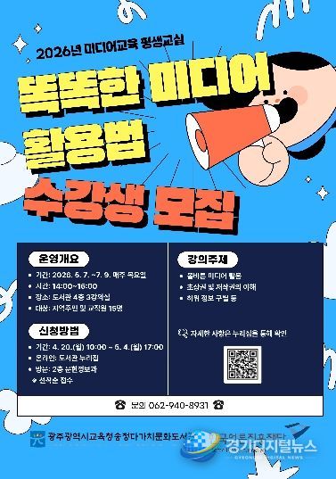 경기디지털뉴스 마성숙 기자 | 광주시교육청송정다가치문화도서관은 오는 5월 7일부터 7월 9일까지 ‘2026년 미디어교육 평생교실’을 운영한다.