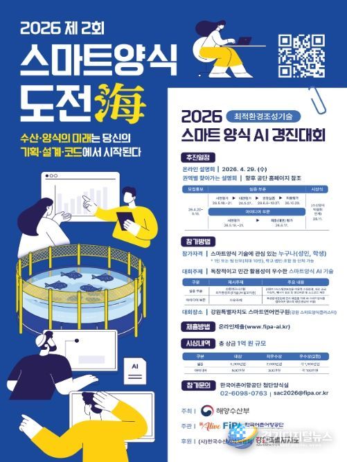 경기디지털뉴스 마성숙 기자 | 해양수산부와 한국어촌어항공단(이사장 홍종욱)은 4월 20일부터 5월 15일까지 ‘제2회 스마트양식 도전해(海) 경진대회’의 공모를 실시한다고 밝혔다.