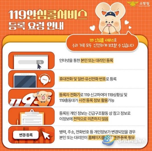 119안심콜서비스는 보호자 연락처, 기저질환, 복용 약물 등 개인의 건강 정보를 사전에 등록하면 119 신고 시 상황실과 구급대원이 해당 정보를 즉시 확인해 보다 적절한 응급처치와 병원 이송을 지원하는 제도다.
