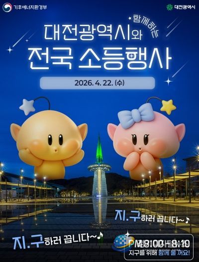 경기디지털뉴스 마성숙 기자 | 대전시는 제56주년 지구의 날을 맞아 20일부터 25일까지 ‘탄소중립 실천으로 세상을 잇다, 지구는 녹색대전환 중’을 슬로건으로 기후변화주간을 운영하고, 22일 저녁에는 소등행사를 실시한다.