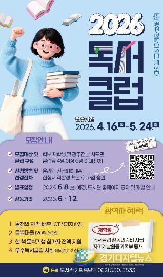 경기디지털뉴스 마성숙 기자 | 전남대학교가 지역사회 내 책 읽는 문화를 확산하고 공동체 소통을 활성화하기 위해 오는 5월 24일(일)까지 ‘2026 독서클럽’ 참여자를 모집한다.