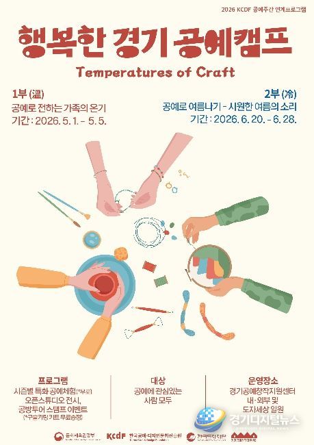 경기디지털뉴스 마성숙 기자 | 한국도자재단이 오는 5월 1일부터 경기공예창작지원센터(여주) 일원에서 체험·전시·이벤트를 결합한 참여형 프로그램 ‘2026 행복한 경기 공예 캠프’를 개최한다.