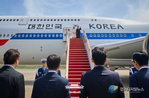 경기디지털뉴스 마성숙 기자 | 이재명 대통령과 김혜경 여사는 5박 6일 일정의 인도 및 베트남 국빈 방문을 위해 19일 경기 성남 서울공항에서 대통령 전용기(공군 1호기)를 이용해 출국했다.