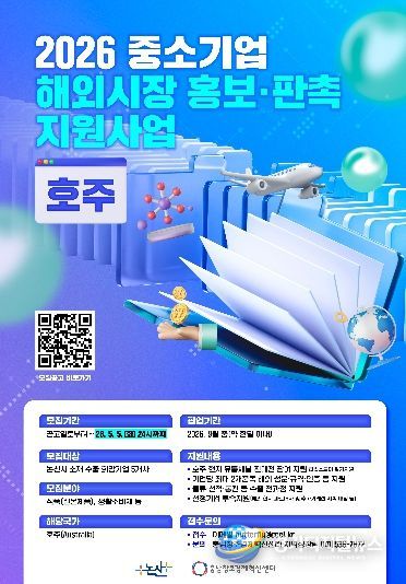 경기디지털뉴스 마성숙 기자 | (재)충남창조경제혁신센터는 2026년 중소기업 해외시장 홍보판촉 지원 사업에 참여할 논산소재 수출 기업을 오는 5월 5일까지 모집한다고 밝혔다.