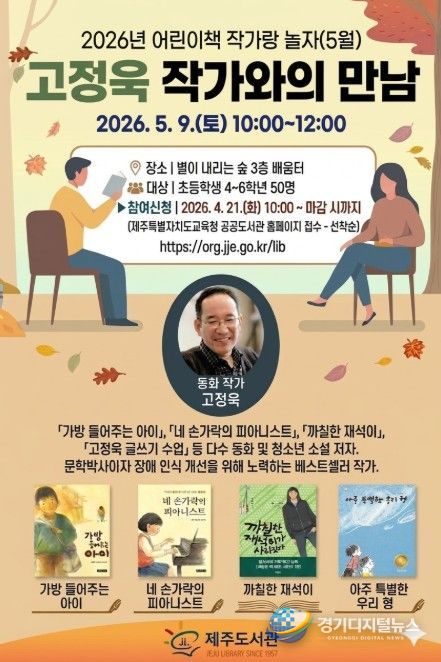 경기디지털뉴스 마성숙 기자 | 제주도교육청 제주도서관은 어린이들이 작가와 직접 소통하며 독서의 즐거움을 느낄 수 있도록 ‘2026년 어린이책 작가랑 놀자’ 프로그램을 운영하고 1회차 참가자를 모집한다.